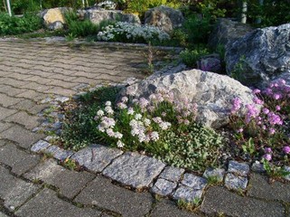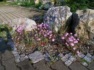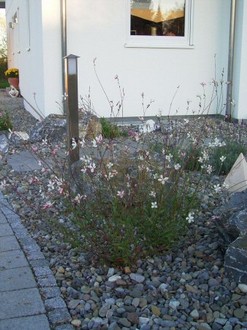 | Kiesbeet mit passender Bepflanzung und ausgesuchten Findlingen